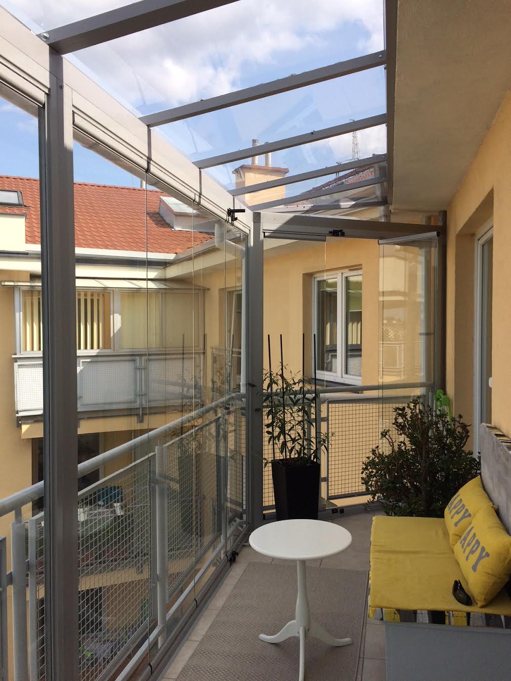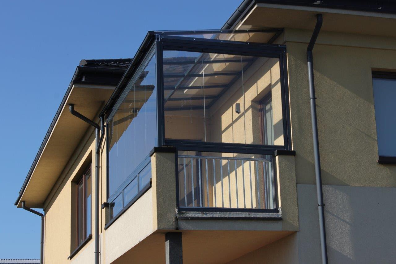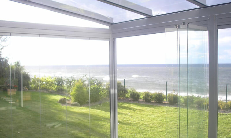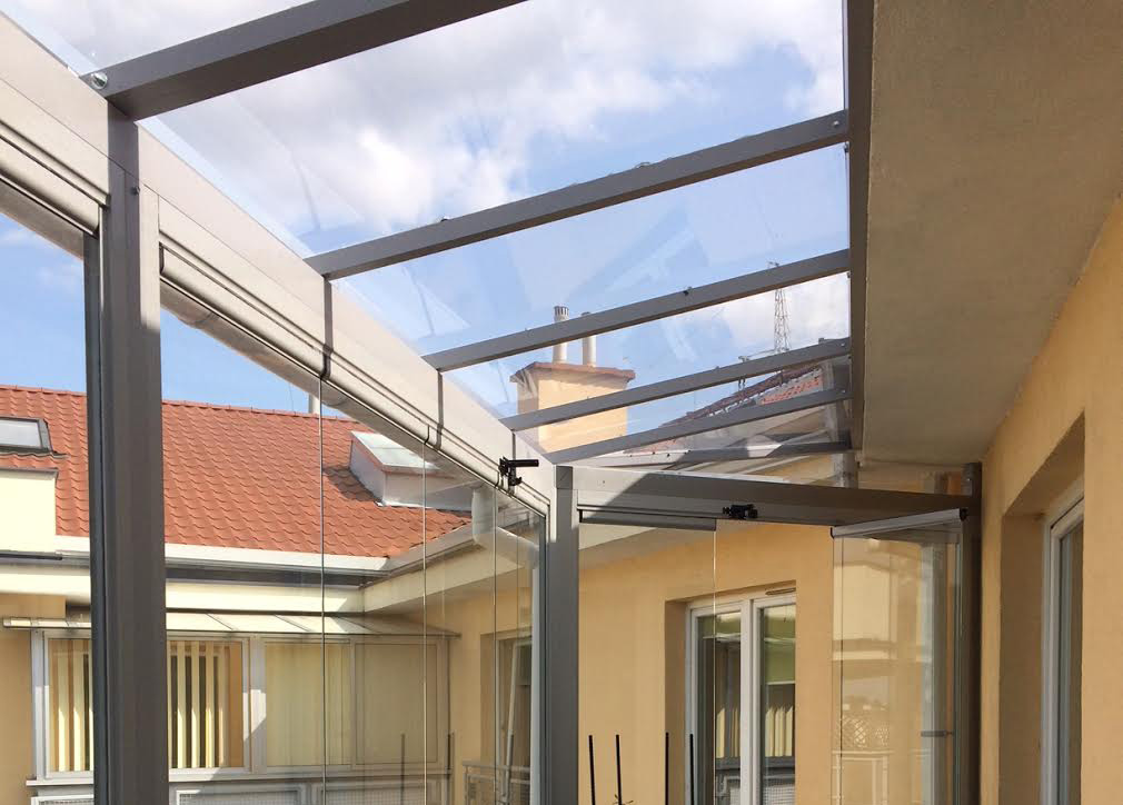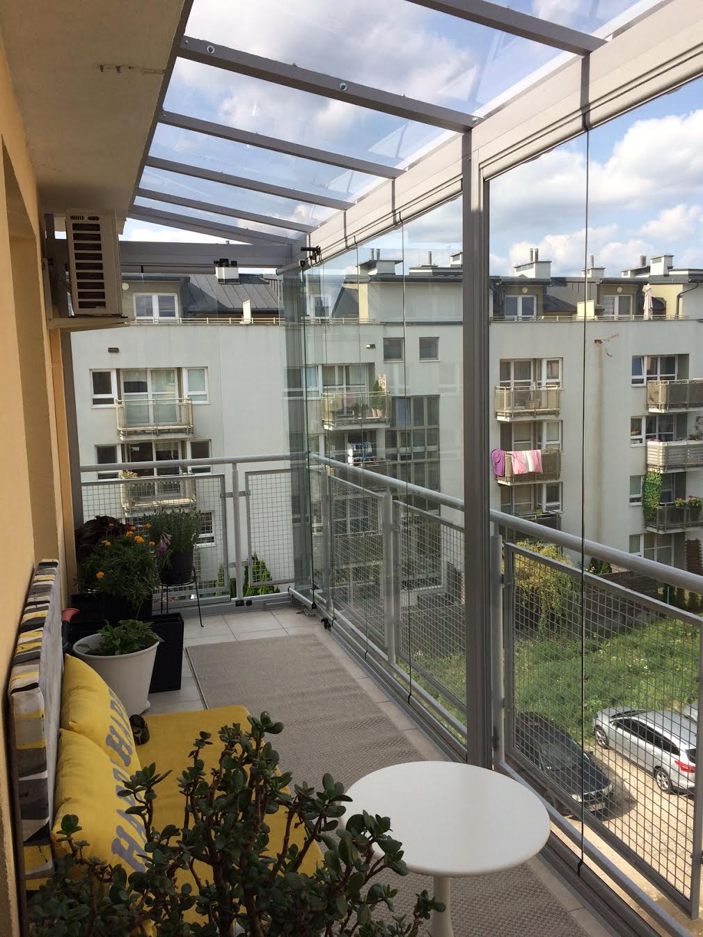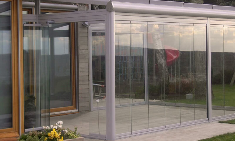 Drugim krokiem, umożliwiającym korzystanie z tarasu przez cały rok to zamkniecie tarasu ściankami ze szkła i aluminium.