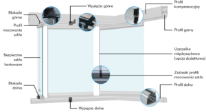 Idea konstrukcji zadaszenia z aluminium i szkła (układ profili)